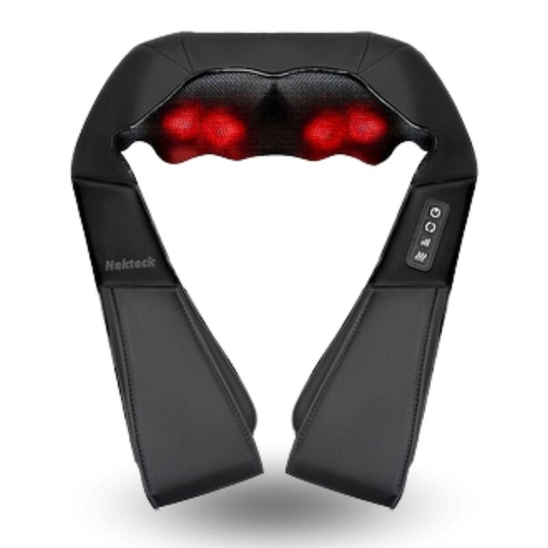 Nekteck Neck and Back Massager with Heat Function 8 Kneading Nodes Adjustable Speeds 15-Minute Auto-Shutoff Faux Leather Lightweight Daily Use Gift